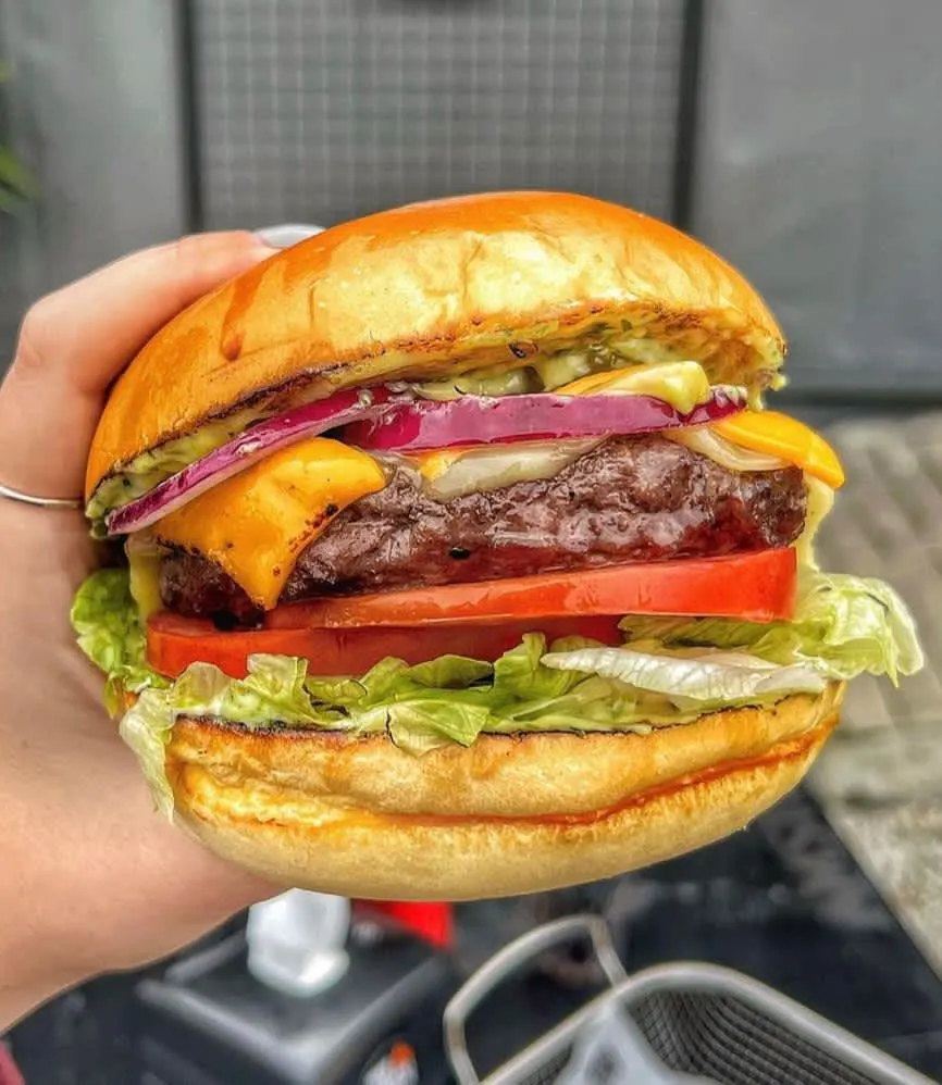 Pão brioche, carne de costela 200g, queijo mussarela e queijo cheddar, alface, tomate, cebola roxa, picles e maionese caseira do Boss.