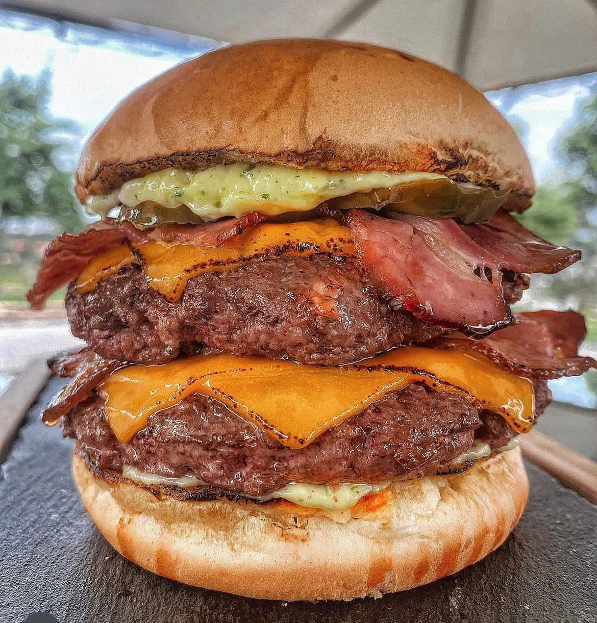 Pão brioche, 2 carnes de costela com 200g cada, queijo mussarela e queijo cheddar, bacon, picles, barbecue e maionese caseira do Boss.